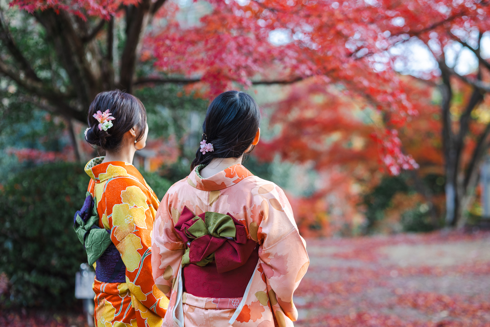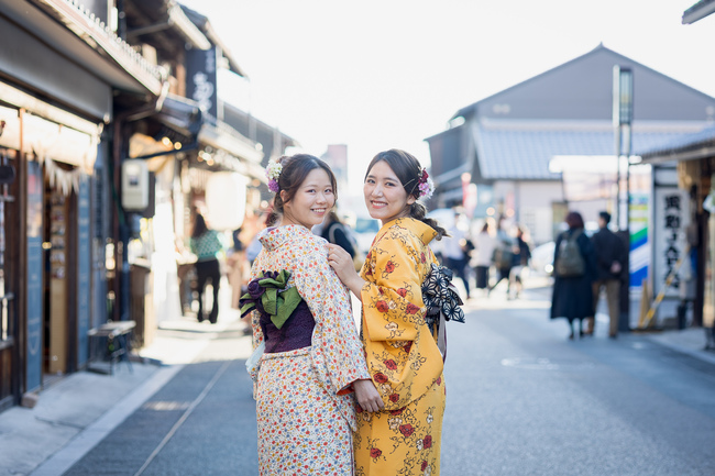 着物での食べ歩きやカフェめぐりなど、秋の風情を楽しみながら散策を。