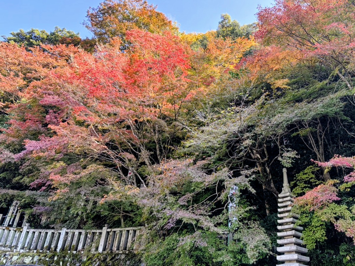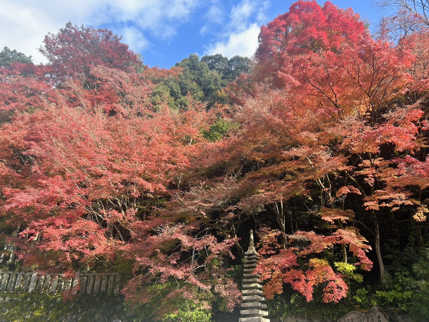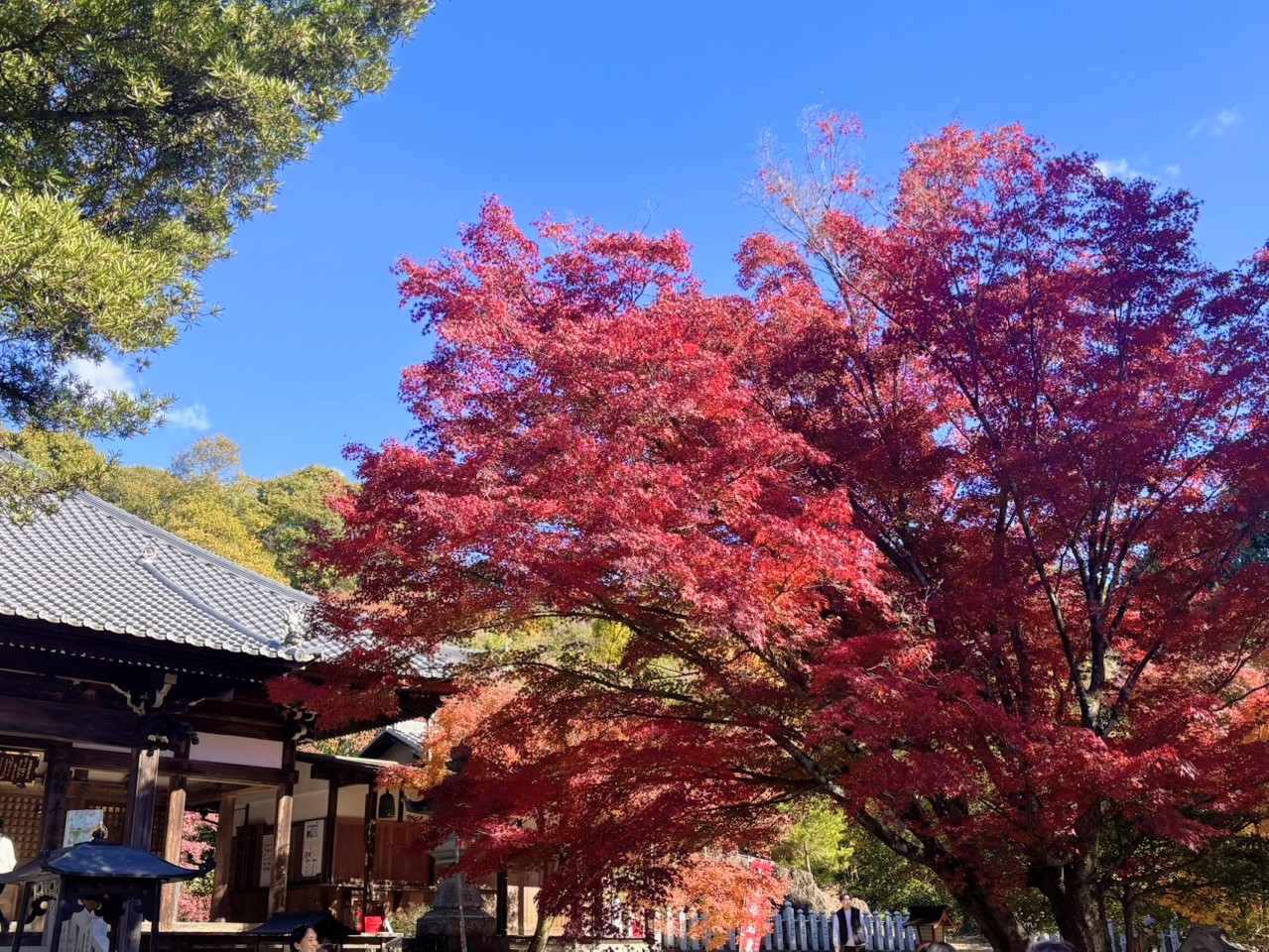 もみじの本数は約1000本。特に巨木が多く、葉が細かく、色鮮やかに染まるので見ごたえ十分です。山の中腹に建つ、本堂までは、木曽川沿いから歩いて約15分。色づくもみじを眺めながら、静かな山寺を散策すると、なんだか心が落ち着きます。周辺には駐車場が少ないため、公共交通機関をご利用ください。