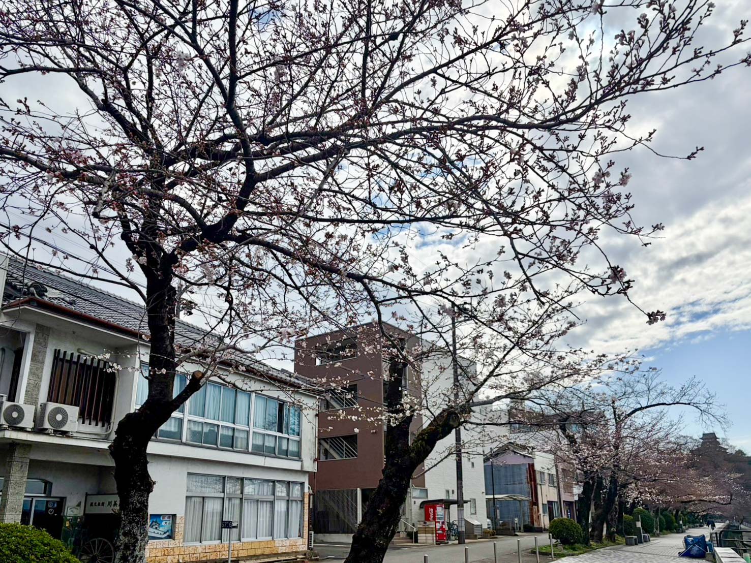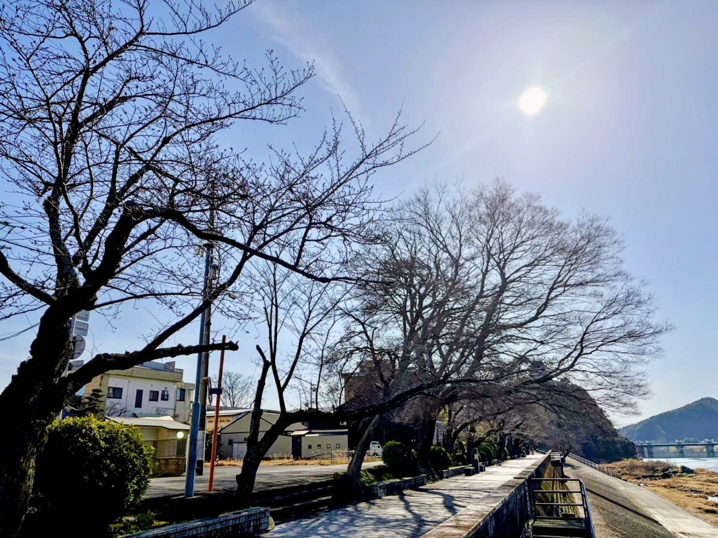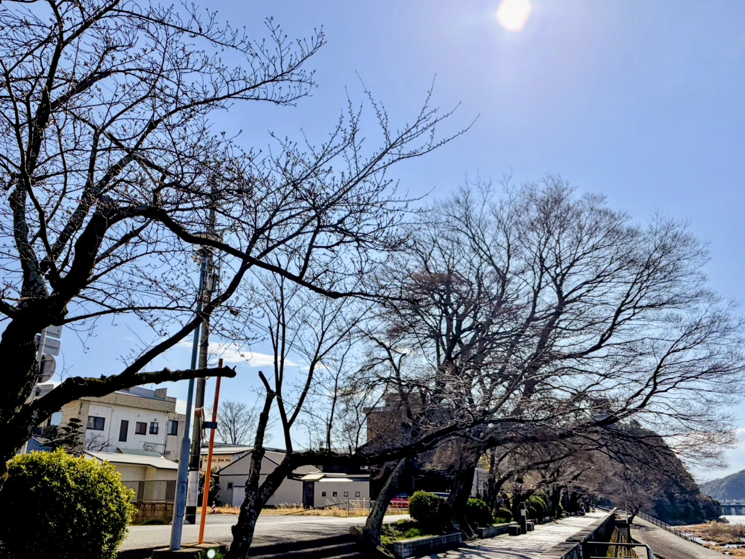 木曽川沿い犬山城へと続く桜並木