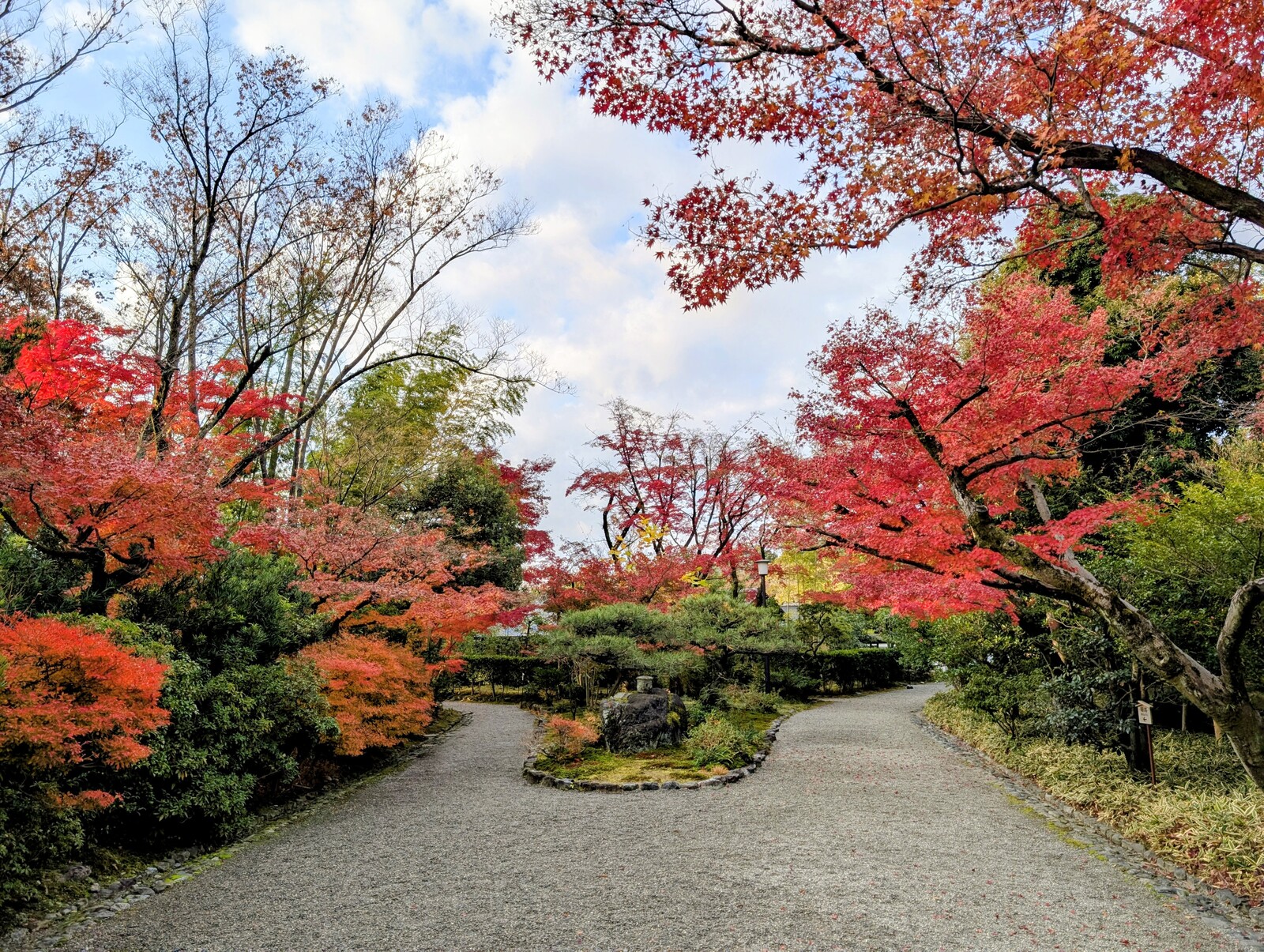 秋は重要文化財「旧正伝院書院」の縁側に腰掛けての紅葉見物がおすすめです。
