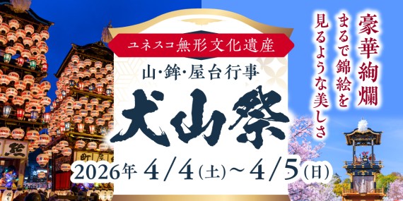 - 犬山祭は、寛永12年(1635)に始まったと伝わる針綱神社の祭礼です。3層の車山13輌と、3つの練り物が城下町に曳き出されます。