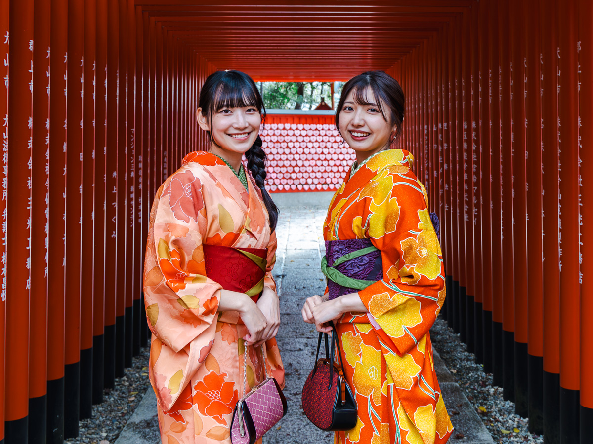 レンタル店の詳細をご案内しています。季節に合わせた色や柄の着物で町歩きをお楽しみください。