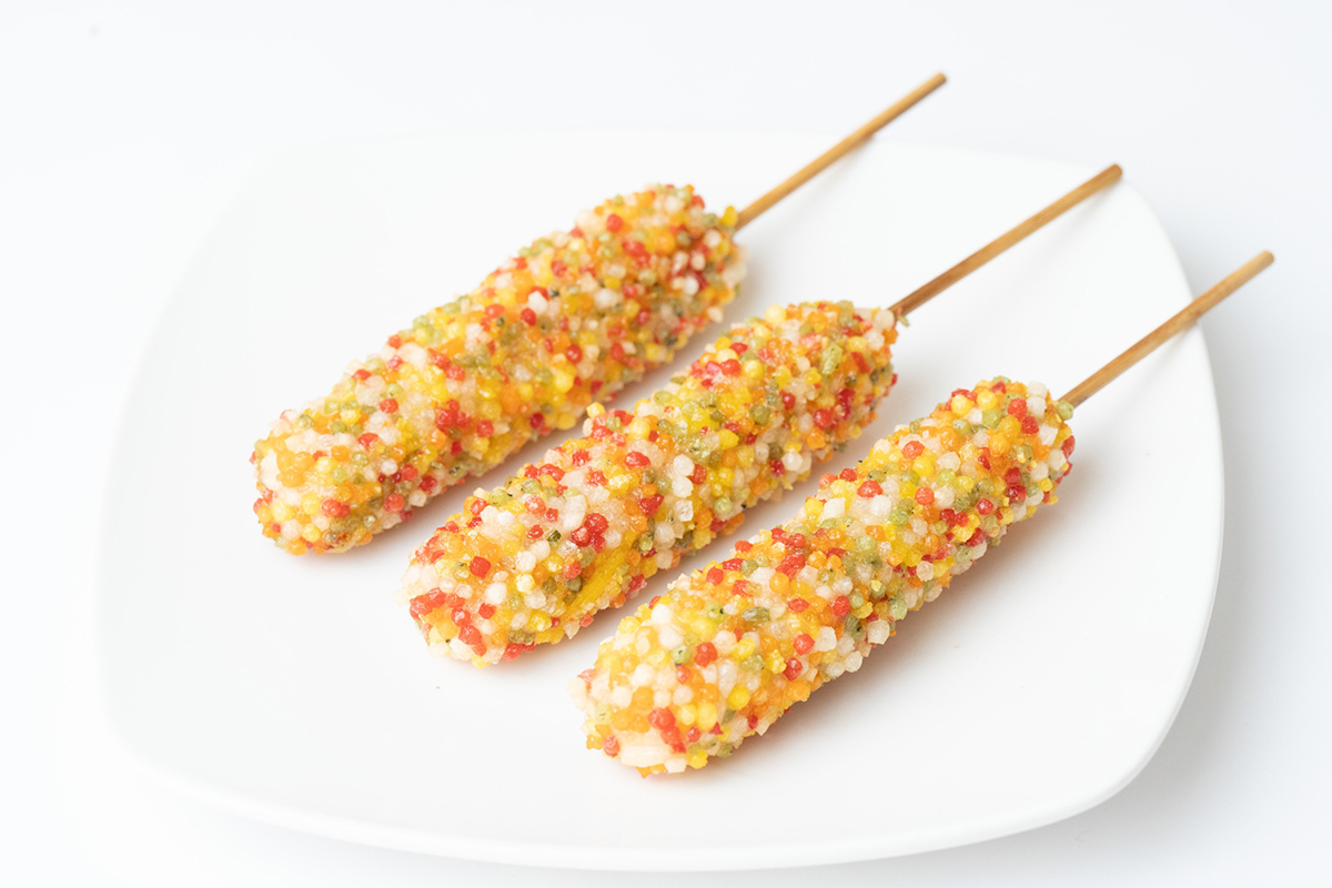 この他にも、多種多様な開運グルメが勢揃い!この季節にぴったりの「さつまいもチップス」や、パン粉の代わりに魔除けなどの願いが込められた五色のあられを使った華やかな「串カツ」など。城下町での食べ歩きにぴったりのグルメも盛沢山。