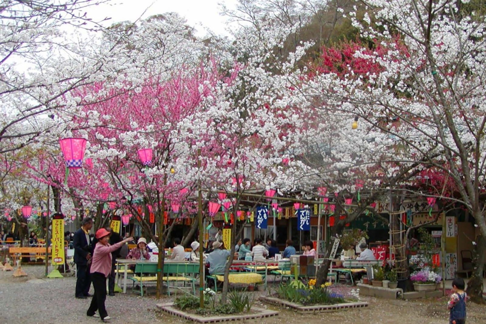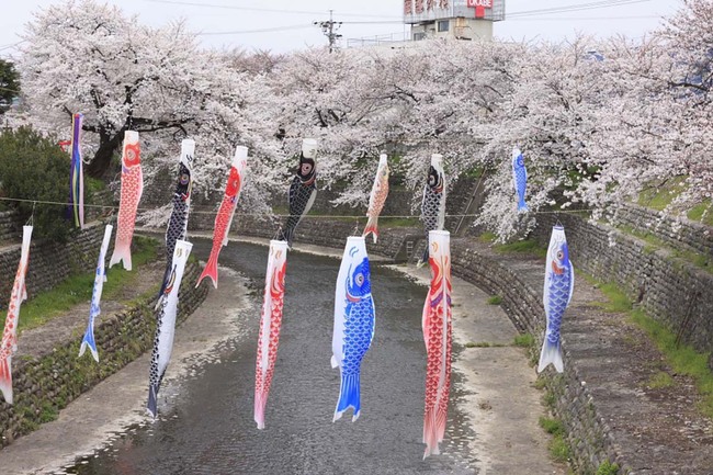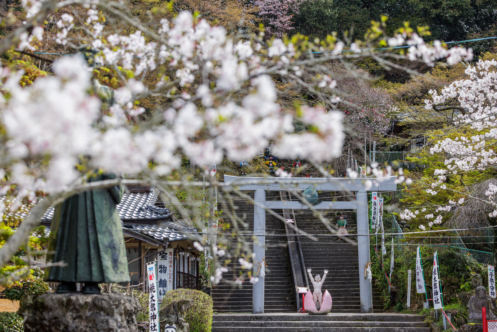桃太郎伝説にちなんだ「桃太郎神社」や個性豊かな石像も点在し、散策しながら春の景色を楽しめるのが魅力です。
