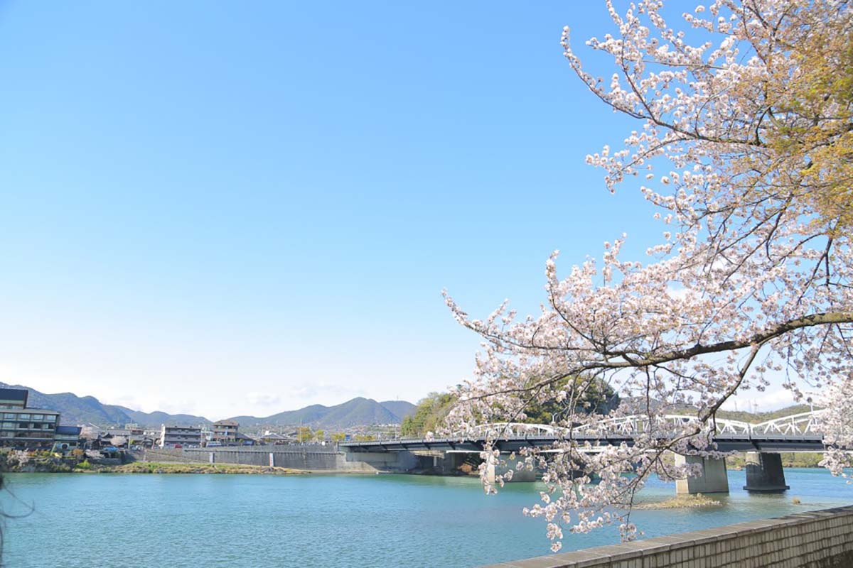 木曽川沿いに続く遊歩道は、清流と桜、そして国宝犬山城を一度に楽しめる散策スポット。