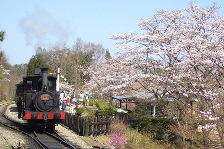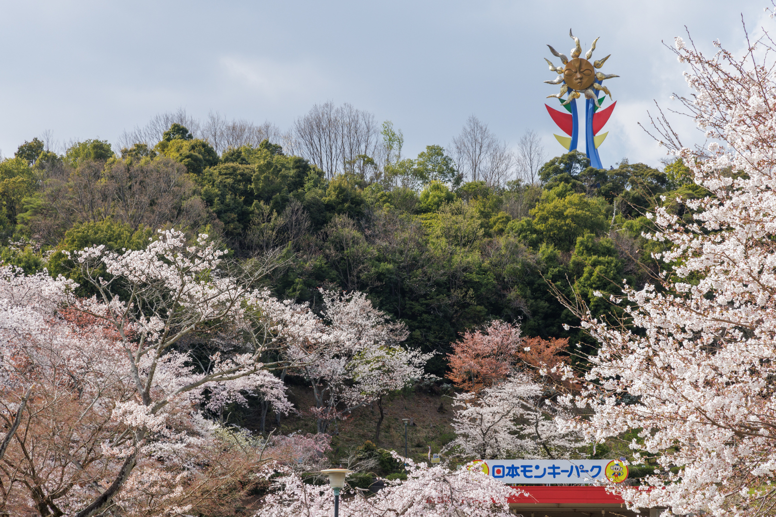 山を彩る桜並木とアトラクションが共演する、日本モンキーパーク。