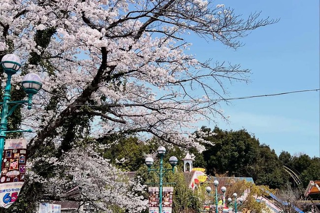 春には園内に約150本の桜が咲き誇り、乗り物から眺める華やかな景色は遊園地ならではの醍醐味です。特に南ゲートから「若い太陽の塔」へと続くエリアは、春の陽光に包まれた風景を楽しめる絶好の散策コースとなります。