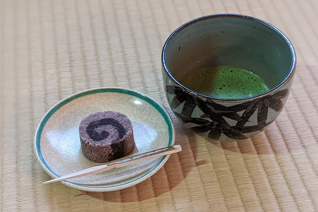 また、茶室「弘庵」では、庭を眺めながら呈茶を楽しむこともでき、春には桜をイメージした茶菓子が添えられます。