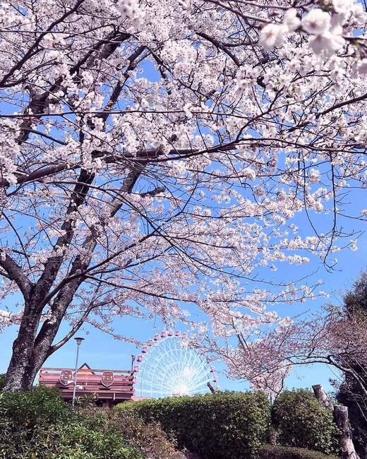園内では、観覧車や芝生広場など、場所ごとに異なる桜の表情を満喫できます。