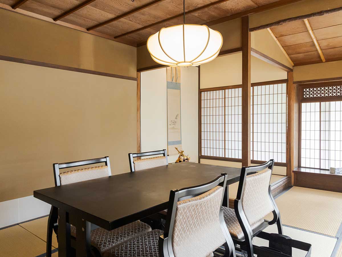 小島家は、犬山の名家の例にもれず、最盛期には茶会が盛んに開かれ、犬山城主・成瀬氏や秀吉が訪れたとも伝えられ、現在は、登録有形文化財建造物になっています。表千家の「残月の間」を模した茶室や、菊や桐の御紋章の細工が使われた座敷、古田織部が作庭した庭園などがあり、2025年に邸宅をリノベーションし、ホテル「宿-SHUKU-」と日本料理店「古今」をオープンしました。