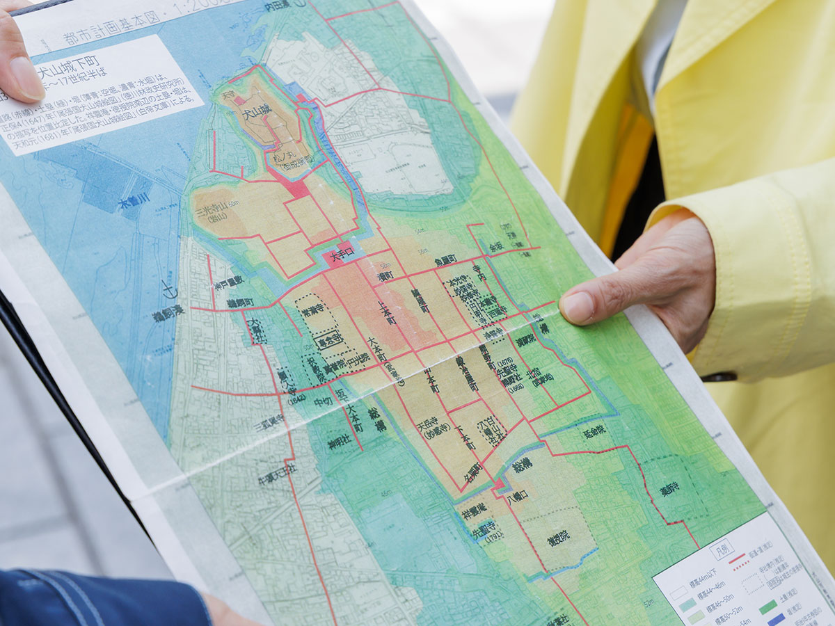 地形から町の成り立ちをひもとく歴史地理学のスペシャリスト、京都大学の山村亜希先生と犬山をお散歩!地形図と現地を見比べながら、「なるほど!」と答えあわせをする“まちあるき”は、発見の連続です。
