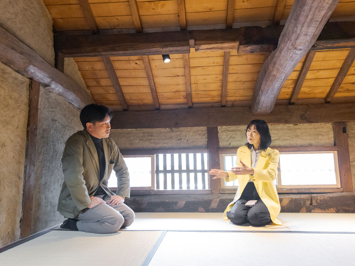 こちらの部屋は「武具の間」。大量の武具が保管されていました。天守がつくられた当初は領主が一時的に利用することもあったようですが、江戸時代に入り平和な世の中になると、統治及び生活の場は「御殿」へ移り、天守は倉庫、物置として使われていることが多かったようです。