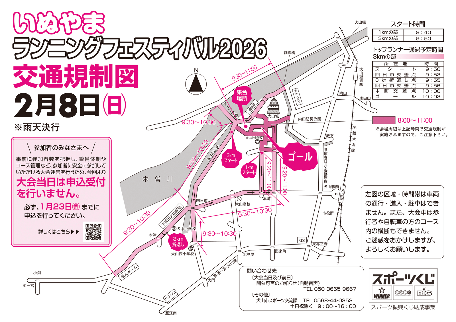 愛知県犬山市では今年も恒例のいぬやまランニングフェスティバルが行われます。開催日には犬山城周辺を含む周辺道路が交通規制となります。ご迷惑をおかけしますがご理解とご協力をお願い致します。乗用車の方は犬山城第2及び第3駐車場をそれぞれご利用ください。大型バスの方は犬山城第2駐車場をご利用ください。詳しくは下記交通規制図をご参照ください。