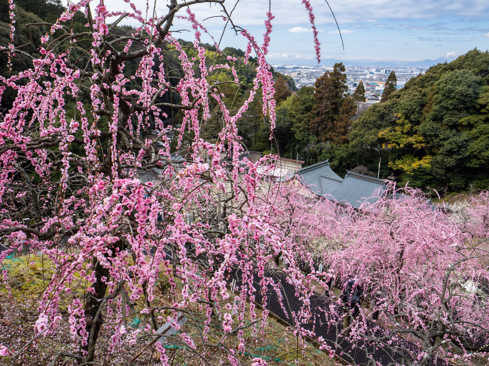 大縣神社境内には3月中頃まで見頃が続く、紅白350本のしだれ梅が咲き誇る「梅まつり」が開催されます。初日の開園式を皮切りに、盆梅や生け花が彩りを添えるなか、期間中には茶会や豊年祭、鑑賞無料の梅華能などが催されます。また、写真コンテストや俳句の募集もしておりますので是非ご参加ください。