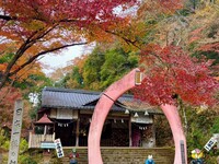 紅葉の赤と銀杏の黄とのコントラストが美しい桃太郎神社。紅葉一色に染まる桃太郎神社も見逃せません。